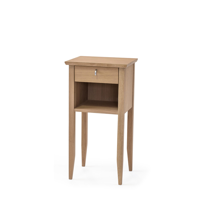 Lyhde on elegantti ja ajaton yöpöytä, valmistettu massiivisesta ja viilutetusta öljytystä tammesta. Sen huolellisesti viimeistelty muotoilu, viistetty kansilevy ja lämmin puupinta tuovat makuuhuoneeseen sekä käytännöllisyyttä että luonnonläheistä tunnelmaa.